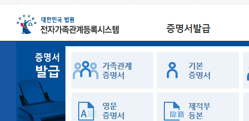 우선 가족관계 증명서는 대한민국 법원 전자가족관계등록시스템에서 발급받을 수 있습니다.