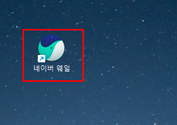 설치가 종료 되면, 비탕화면에 네이버 웨일 아이콘이 설치 되며 더블클릭하여 접속합니다.
