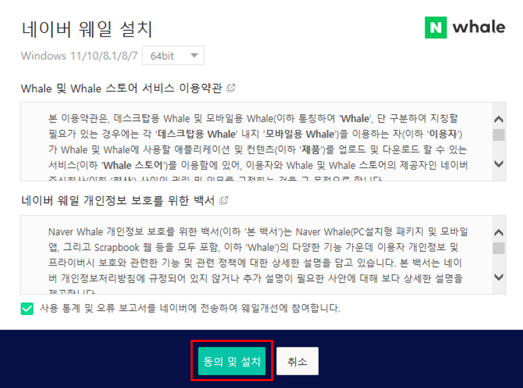 3. 네이버 웨일 동의 및 설치