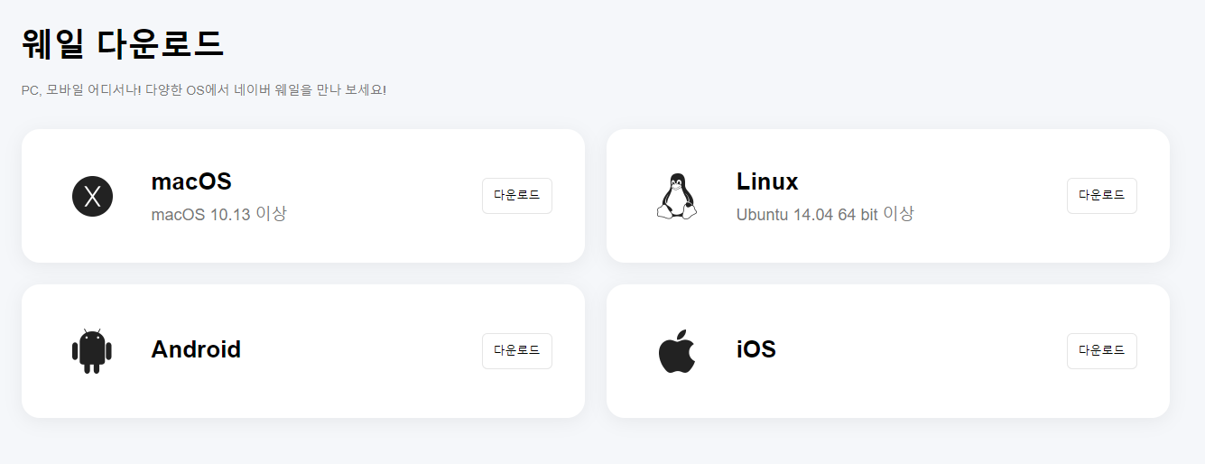 PC, 모바일 어디서나 사용할 수 있는 다양한 OS에서 사용가능한 네이버 웨일 설치파일을 다운받을 수 있습니다.