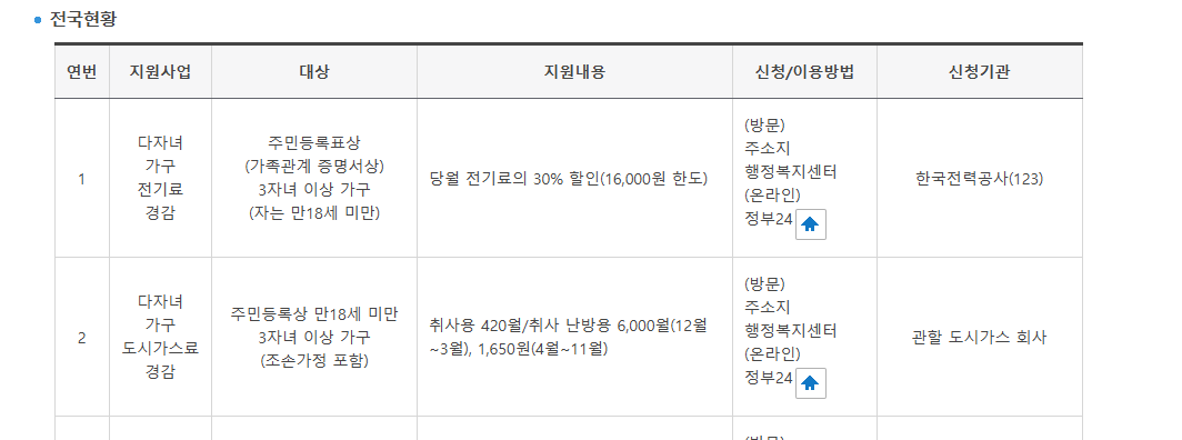 전기료 경감 / 도시가스료 경감 등 다양한 혜택이 있습니다.