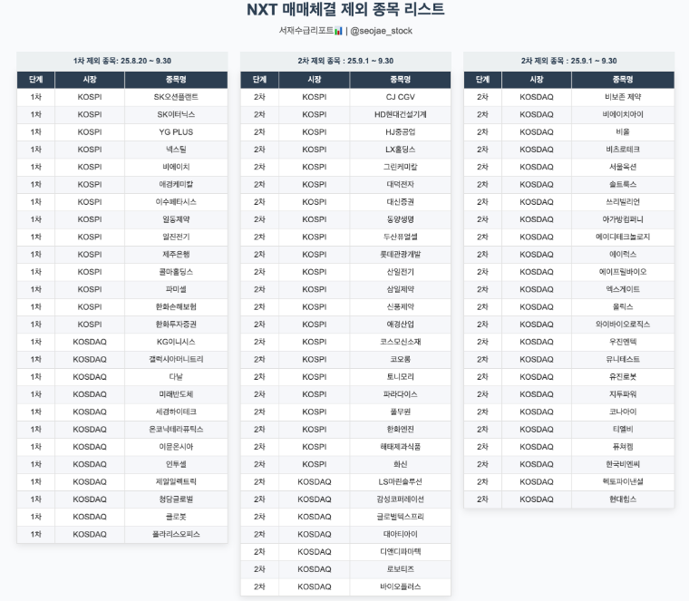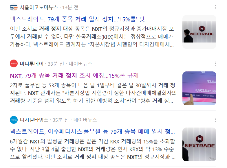 2025년 8월 18일), NXT 규정에 따라 79개 종목이 거래 정지 대상으로 발표되었습니다.
