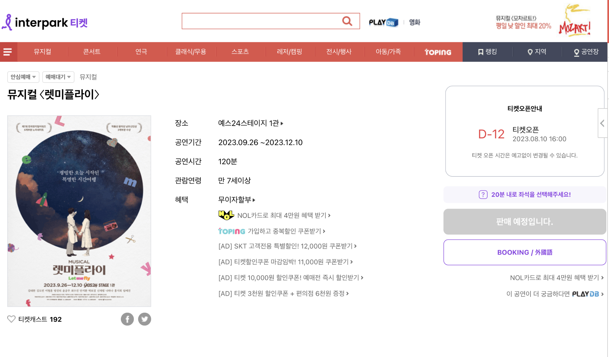 다들 오픈 날짜 잘 챙기셔서 즐거운 공연 관람 되시길 바라겠습니다.