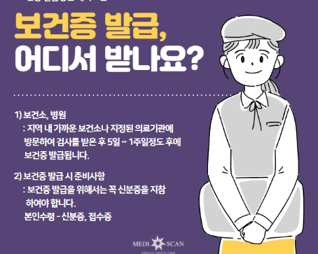 2) 보건증 검사를 받은 보건소에 직접 내방하여 발급도 가능합니다.