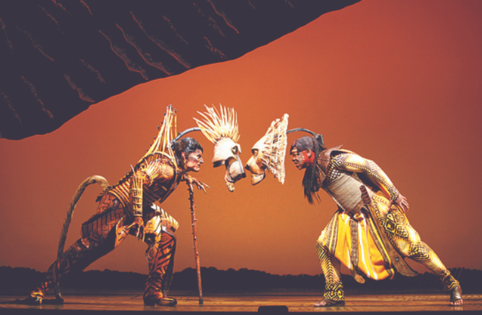 두번째로 무대 연출과 의상은 <라이온킹>의 큰 매력 중 하나다. 사바나의 아름다운 풍경과 동물들의 움직임을 생생하게 재현하며, 관객들을 사바나의 세계로 초대한다. 특히, 사바나를 모티브로 한 장대한 무대 디자인과 공중에 떠 있는 동물들의 출현은 시각적인 재미를 준다.