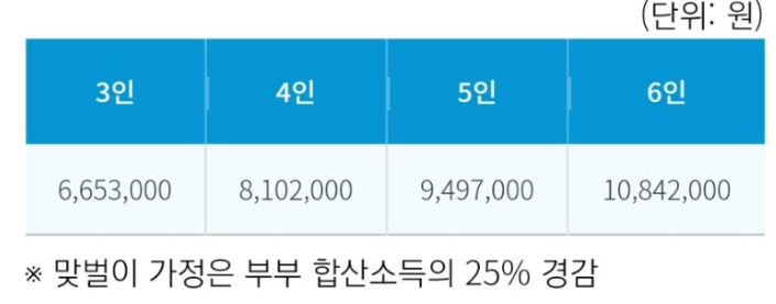 - 중위소득 150%는 3인 가준 기준으로 월 665만3,000원정도