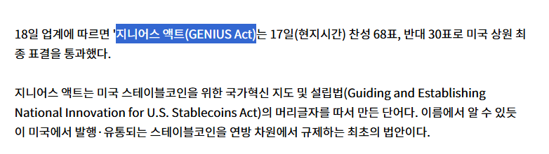 서클은 미국 기반 기업이기 때문에 SEC, CFTC 등 다양한 규제 기관의 정책 변화에 크게 영향을 받을 수밖에 없습니다. 특히 암호화폐 관련 법안이 명확히 정리되지 않은 상황에서 규제 이슈는 항상 잠재적인 리스크로 작용합니다. 18일 미 상원의 문턱을 넘은 지니어스 액트 법안에서도 가장 중요한게 투명성 제고에 초점을 맞추고 있습니다.
