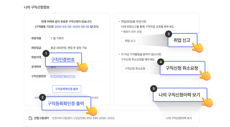 - 고용센터에서 보내온 문자, 이메일, 워크넷 메시지를 꼼꼼히 확인하세요.