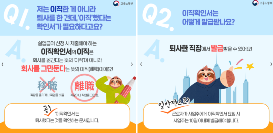 * 이직확인서는 고용노동부가 아닌 다니던 회사에 발급 요청서를 요청해야 합니다.