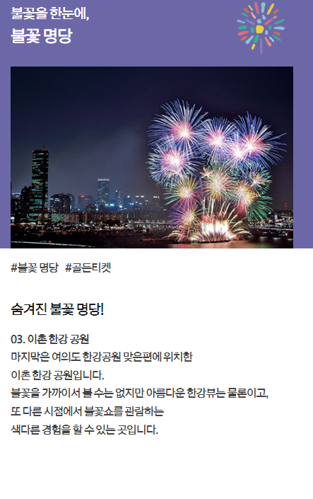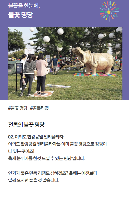 이외에도 전통의 불꽃명당 여의도 한강공원 멀티플라자와