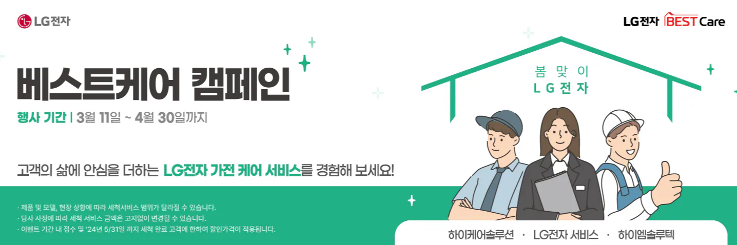 삼성과 마찬가지로 4월 30일까지 예약한 고객 대상으로 에어컨 청소 할인 캠페인을 진행중이니 서둘러주세요!
