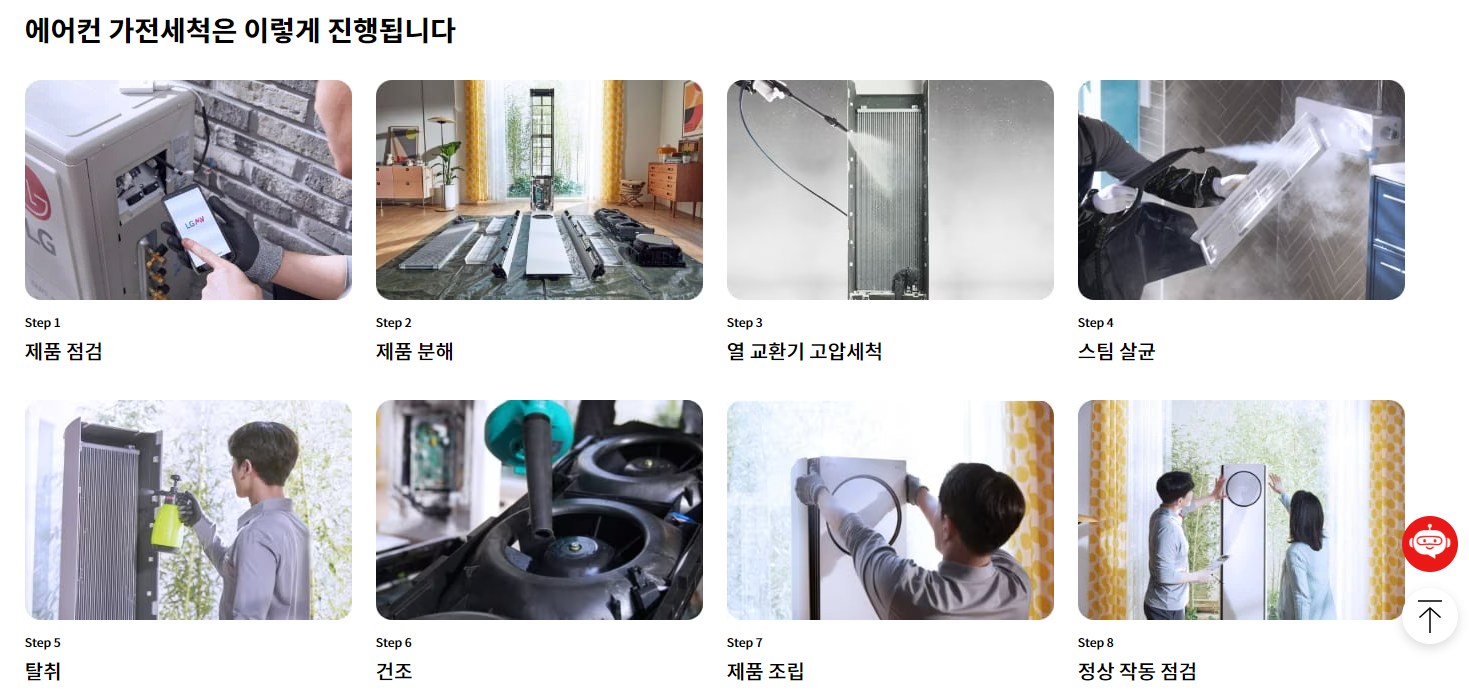 LG전자는 베스트케어 서비스를 통해 에어컨 세척이 가능합니다.