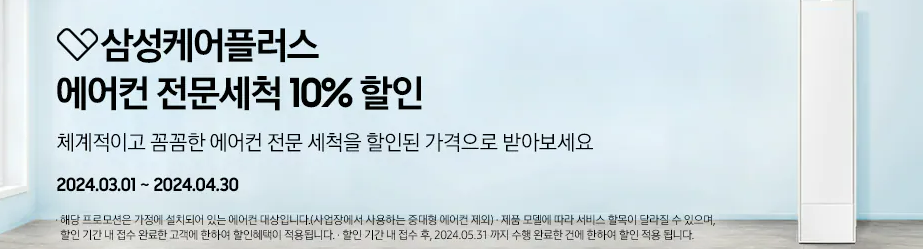 삼성 에어컨 청소는 삼성 케어플러스 서비스센터에 신청하시면 됩니다.