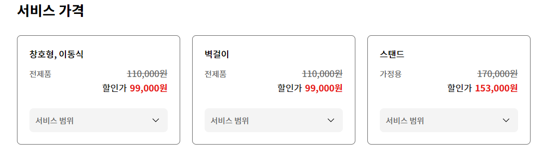 삼성과 LG의 에어컨 청소 서비스는 전문적이라는 신뢰도가 높은 반면에 비용이 비싸고 에어컨 청소 날짜 잡는 것도 어려운게 사실입니다. 이럴때 사설 에어컨 청소 업체를 이용하셔도 좋을 것 같습니다. 비교견적은 아래 배너를 이용해주세요.