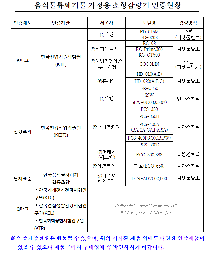 인증된 제품을 구입해야하며, 서대문구에서 지원가능한 제품은 아래와 같습니다.