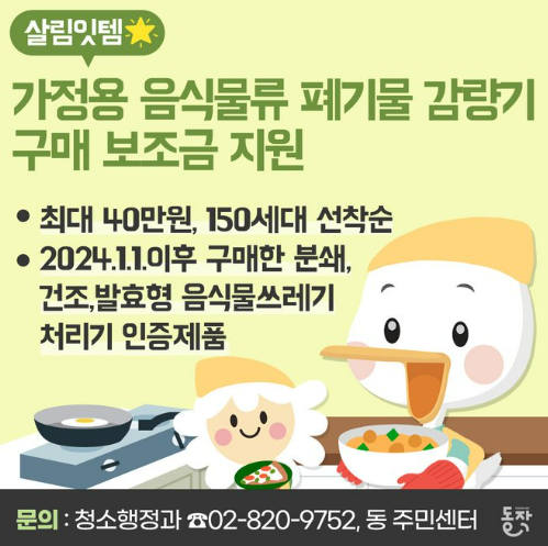 지자체 지원금 해당되는 구에 사시는 분들은 꼭 지원금 받으셔서 음식물 처리도 보다 쉽게, 처리기 구입도 보다 저렴하게 구입하시길 바랄게요!