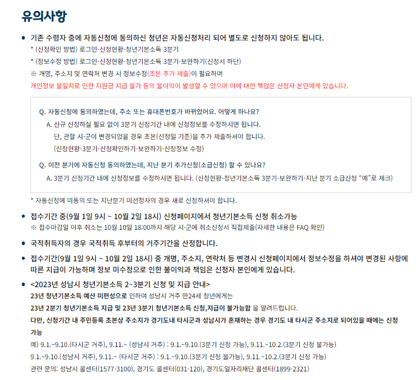 5. 청년 기본소득 신청 유의 사항