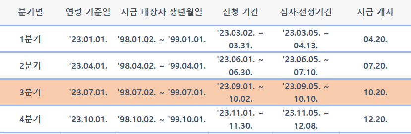 2023년 7월 1일 기준으로 만24세 청년에 한해서 지난 분기 미신청분 추가신청도 가능하다고 합니다. 지급 대상자 생년월일에 해당되는 경기도 청년은 반드시 소급신청 해서 지원금 수령하시길 바랄게요. 그럼 오늘도 즐거운 하루 되세요!