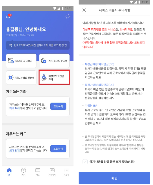 2. 잠자는 퇴직연금 찾기는 방법 (모바일 버전)