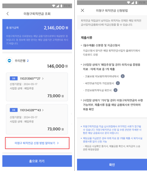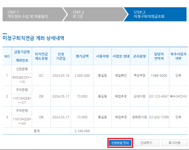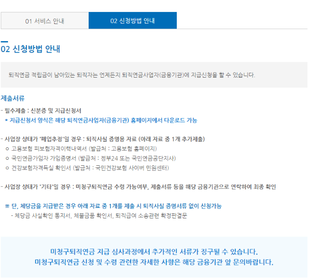 4) 미청구 퇴직연금 신청방법 참고하여 신청하기