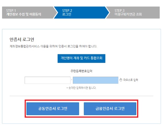 2) 미청구퇴직연금 조회 서비스 클릭