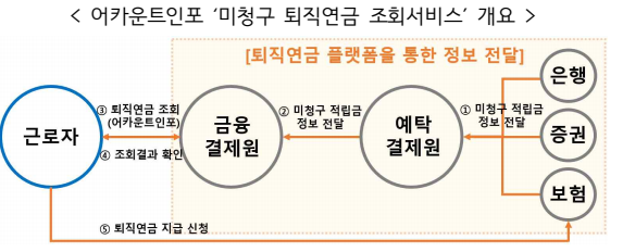 * 금융결제원 '어카운트인포' 를 통해 5월 29일부터 근로자가 찾아가지 않아도 퇴직연금을 조회 및 확인 할 수 있게 되었습니다. (https://www.payinfo.or.kr/payinfo.html)