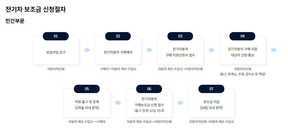 5. 전기 자동차 구매 보조금 신청 및 접수 : 자동차 수입 / 제조사 → 지자체