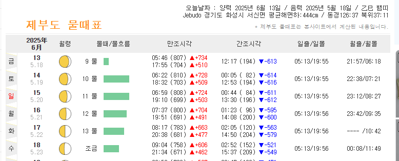 2. 2025 제부도 물때 시간표 확인 방법