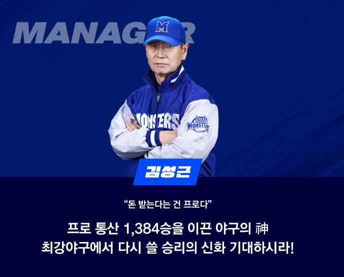 야신 김성근 감독님을 필두로 라인업이 공개되었습니다.