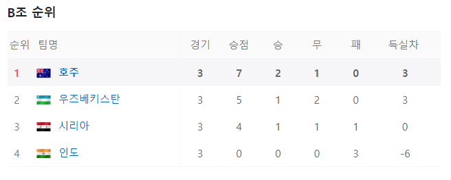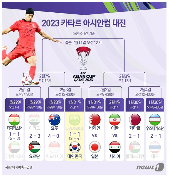 국가대표 선수들의 피로 누적이 가장 큰 변수가 아닐까 싶습니다. 호주와의 경기에서 부디 승리하여 4강에 진출할 수 있길 기원합니다!