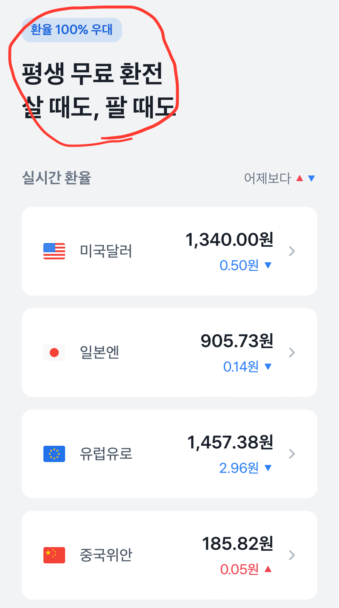 토스 모바일 앱에 고시된 환율을 따르며 외화 살때, 팔떄 모두 100%우대 적용을 받을 수 있습니다.