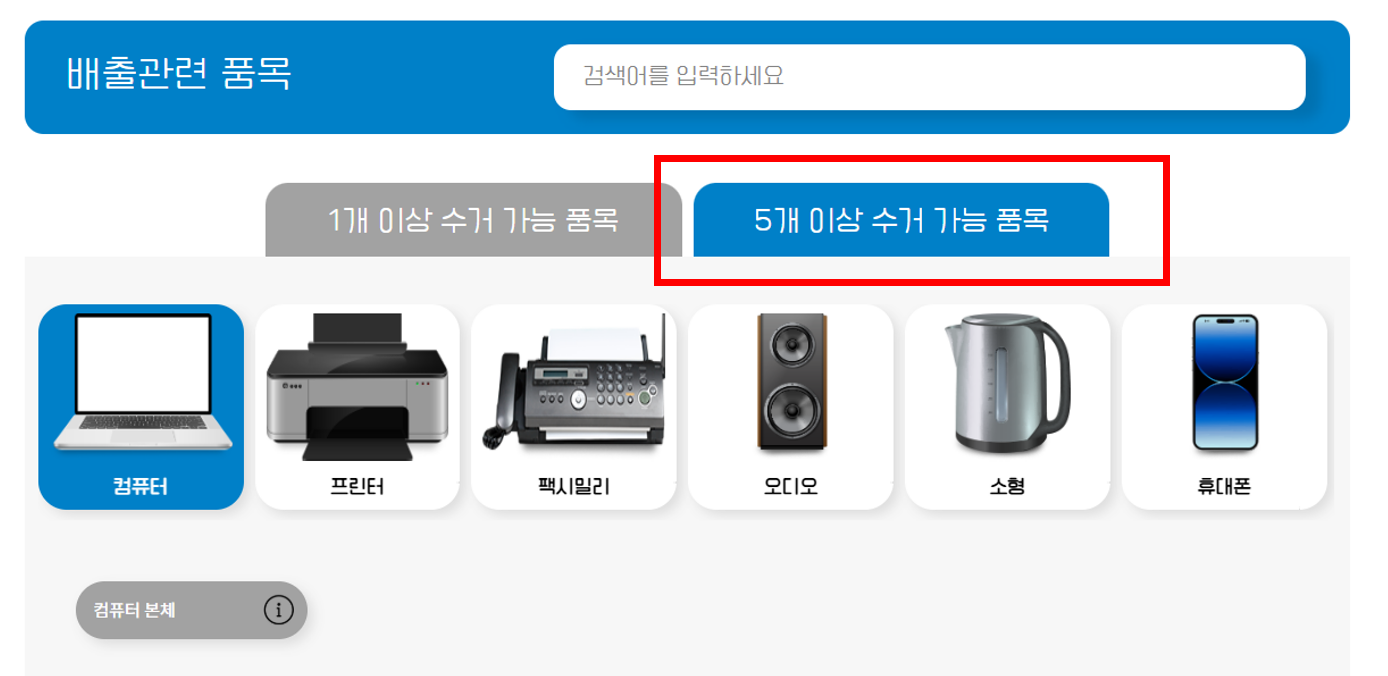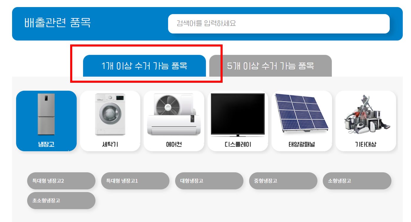 -배출관련 품목 클릭하기 (1개 이상 수거가능 품목 / 5개이상 수거 가능 품목 확인)