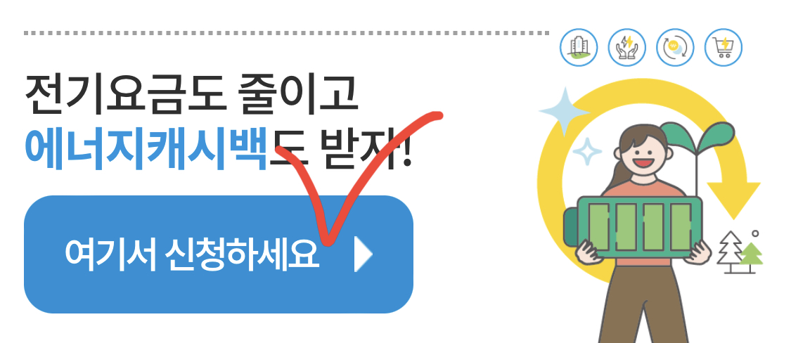 긴 장마가 끝나고 나면 무더위가 찾아온다죠. 올해 여름도 걱정되는건 바로 전기요금이 아닐까 싶습니다. 한국전력에서는 지난해 부터 개별 세대 및 아파트 단지를 대상으로 에너지 캐시백을 시행하고 있습니다. 에너지 캐시백에 가입하면 참여자가 절감량에 따라 1kwh당 30원의 캐시백을 받게됩니다. 한국전력은 이달부터 캐시백 규모를 1kwh당 100원으로 확대하였으니 빠르게 신청하여 캐시백 받으세요!