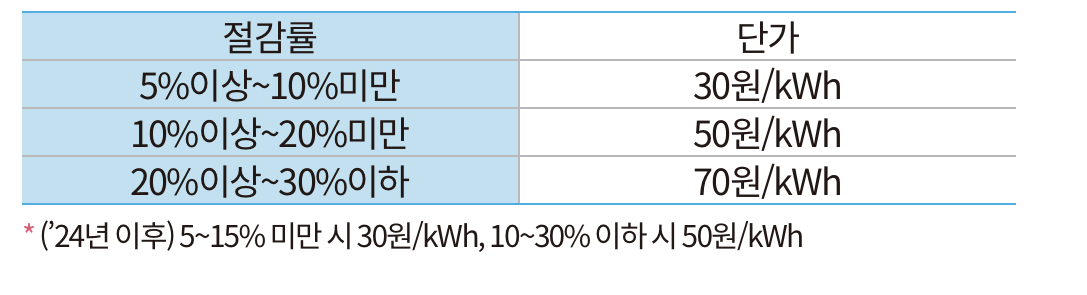최소 절감률 3%와 동일지역 참여자 평균절감률 이상을 달성한 경우, 절감량 1kwh당 30원을 지급합니다.