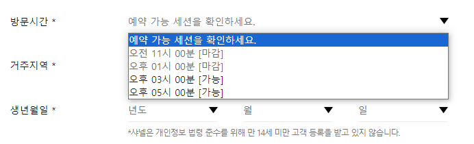 이렇게 예약일자가 떠도 마감 / 가능한 시간이 따로 있기 때문에 꼭 미리 확인해주세요.