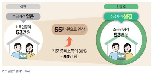 2024년 중위소득은 역대 최대 수준의 인상으로 4인 가구 기준으로 2023년 540만 964원 대비 6.09% 인상된 572만 9913원입니다. 또한 수급가구의 대다수를 차지하는 1인가구는 222만 8445원으로 2023년 보다 7.25%인상되었습니다.