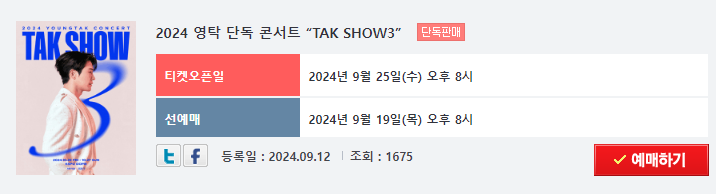 1. 2024 영탁 단독 콘서트 '서울' 공연 예매 방법