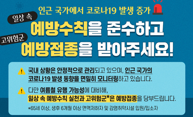 - 여름철 코로나19 유행 가능성↑: 인접국(중국, 홍콩, 대만, 태국 등)에서 이미 증가세