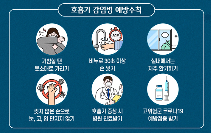 👉 즉, 호흡기 감염 방지를 위한 기본 수칙도 함께 지키시면 좋습니다
