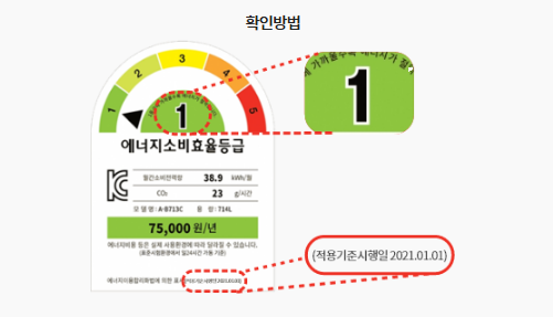 - 구매는 온·오프라인 어디서나 가능. 단, 반드시 에너지소비효율등급 라벨이 있어야 함.