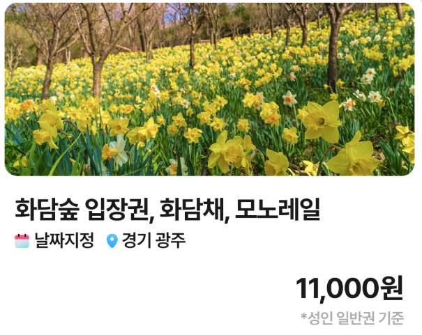 - 화담숲 / 화담채 입구 및 모노레일 탑승장에서 제시 하면 됩니다.