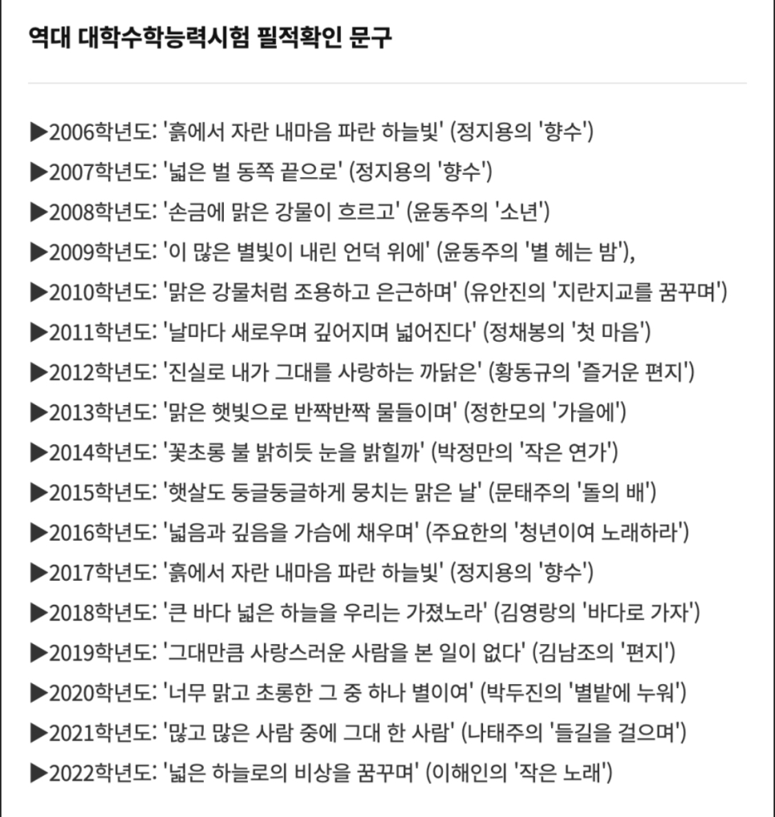 역대 필적 확인 문구도 한 번 보실까요?