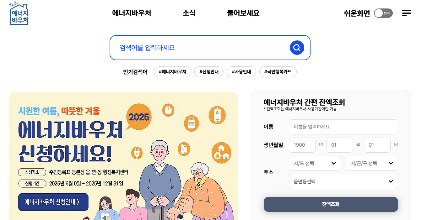 - 신청 : 에너지 바우처 홈페이지 https://www.energyv.or.kr/