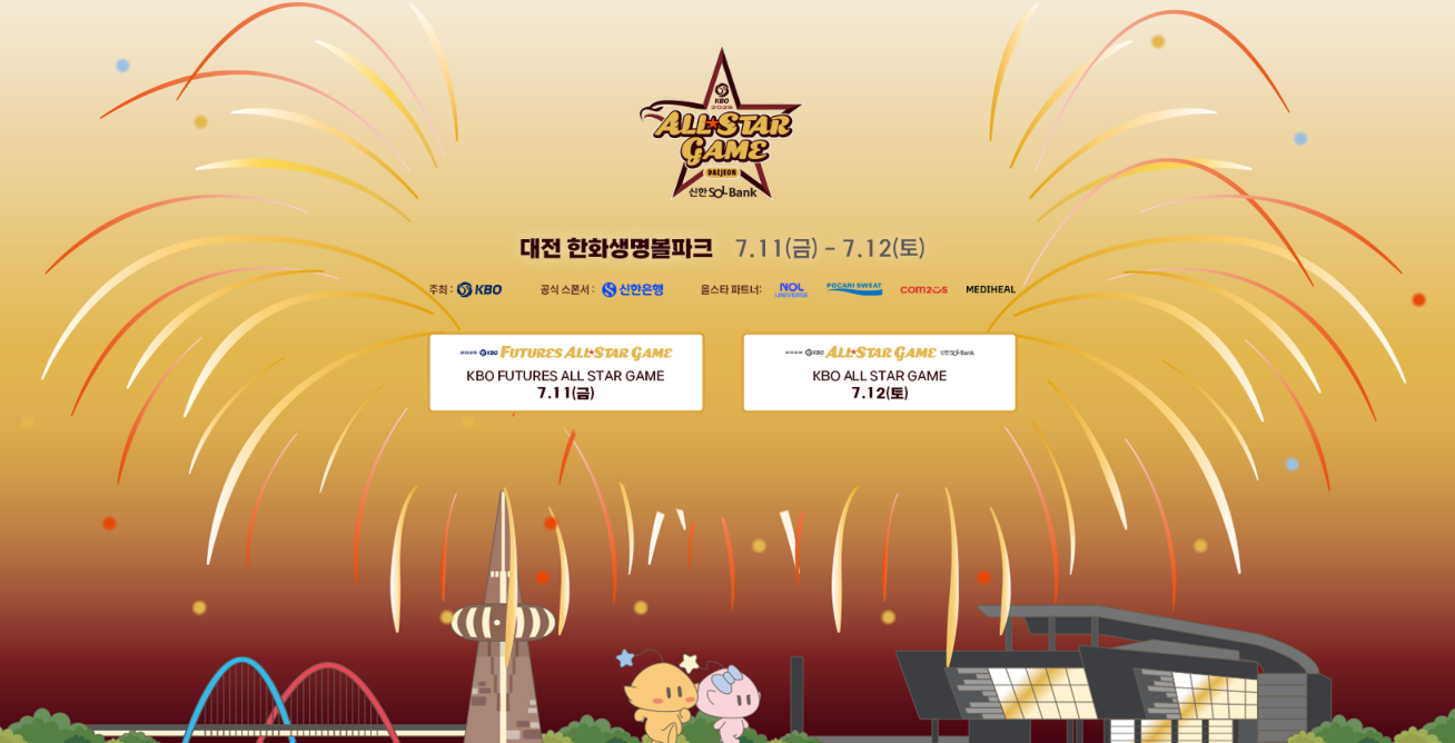 올해 프로야구 올스타전은 한화 이글스의 새 홈구장인 대전 한화생명 볼파크에서 오는 7월 11~12일에 열린다. 올스타전 리그 휴식 기간은 7월 11~16일까지입니다.