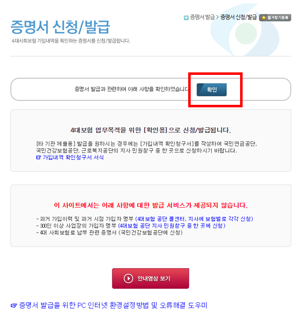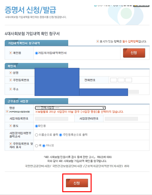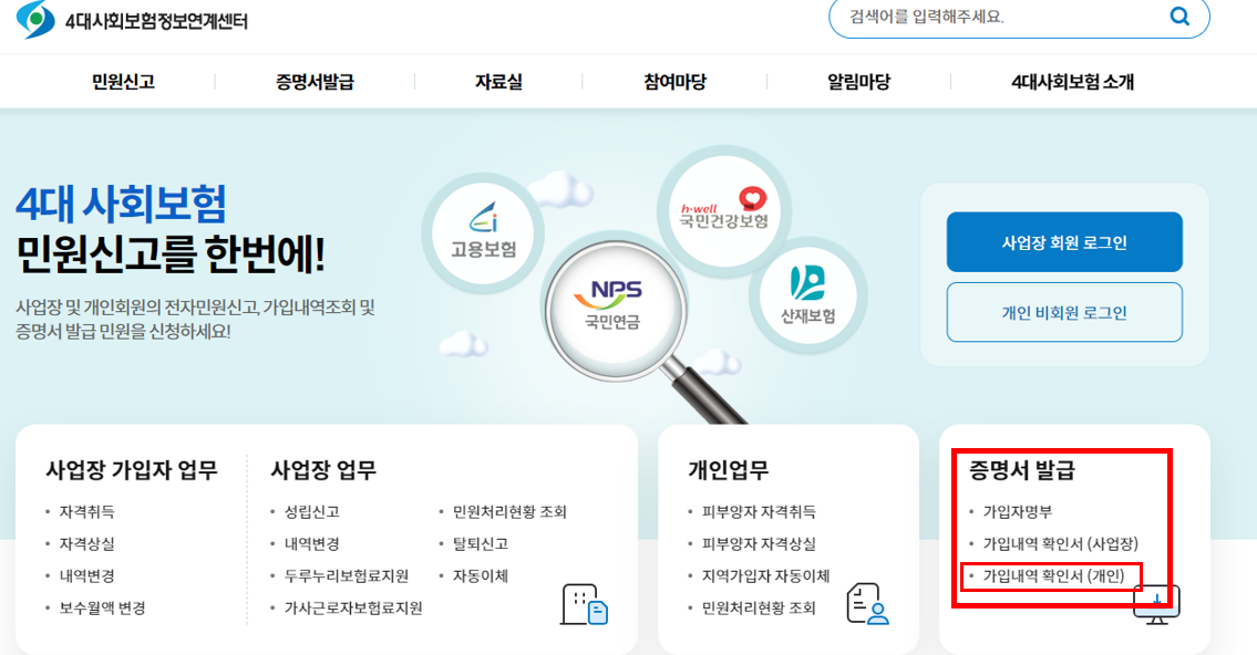 1. 4대보험 가입확인서 발급 방법