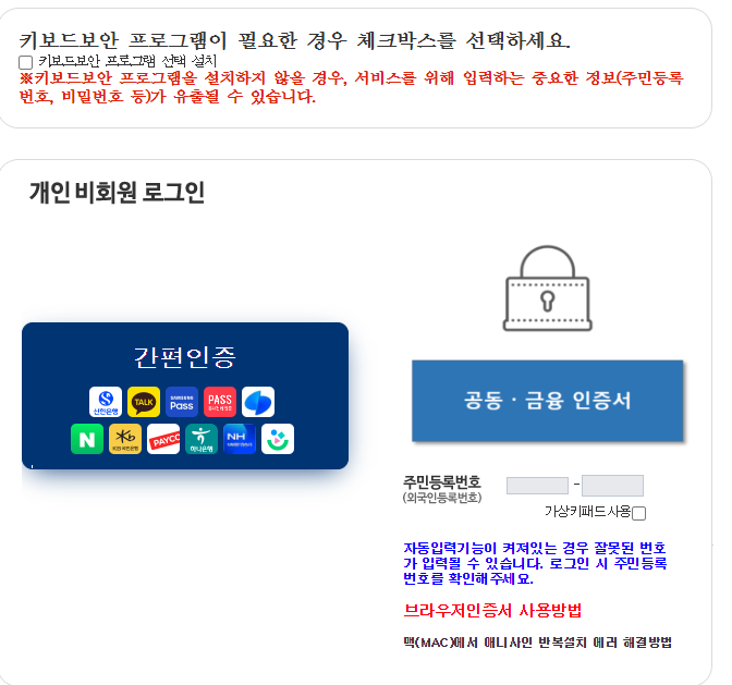 2) 간편인증 및 공동/금융 인증서를 활용하여 본인 인증을 합니다.