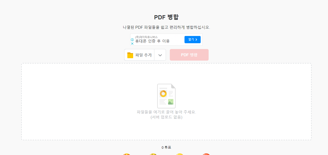 - 병합을 원하는 파일을 파일 추가 또는 파일 드래그로 끌어 놓아주면 됩니다.