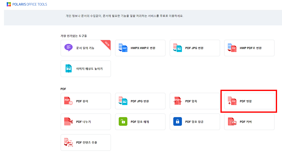 2) 오른쪽 하단 PDF 병합을 눌러줍니다.