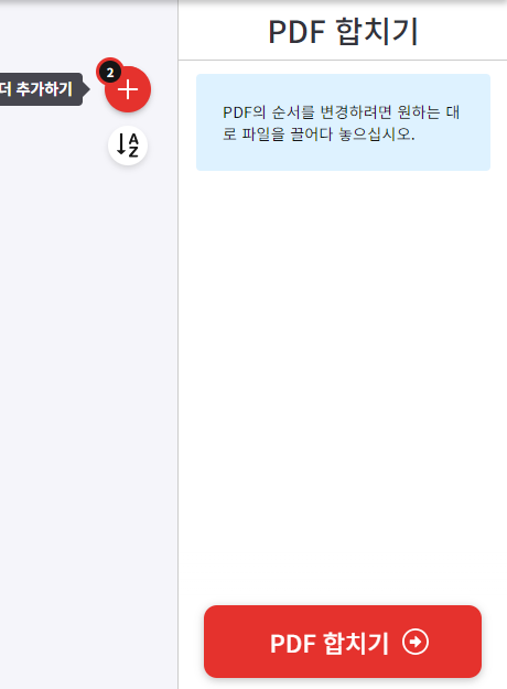 4) 그럼 오른쪽에 PDF 합치기 빨간색 버튼이 활성화 되고, 눌러주시면 합치기 완료!